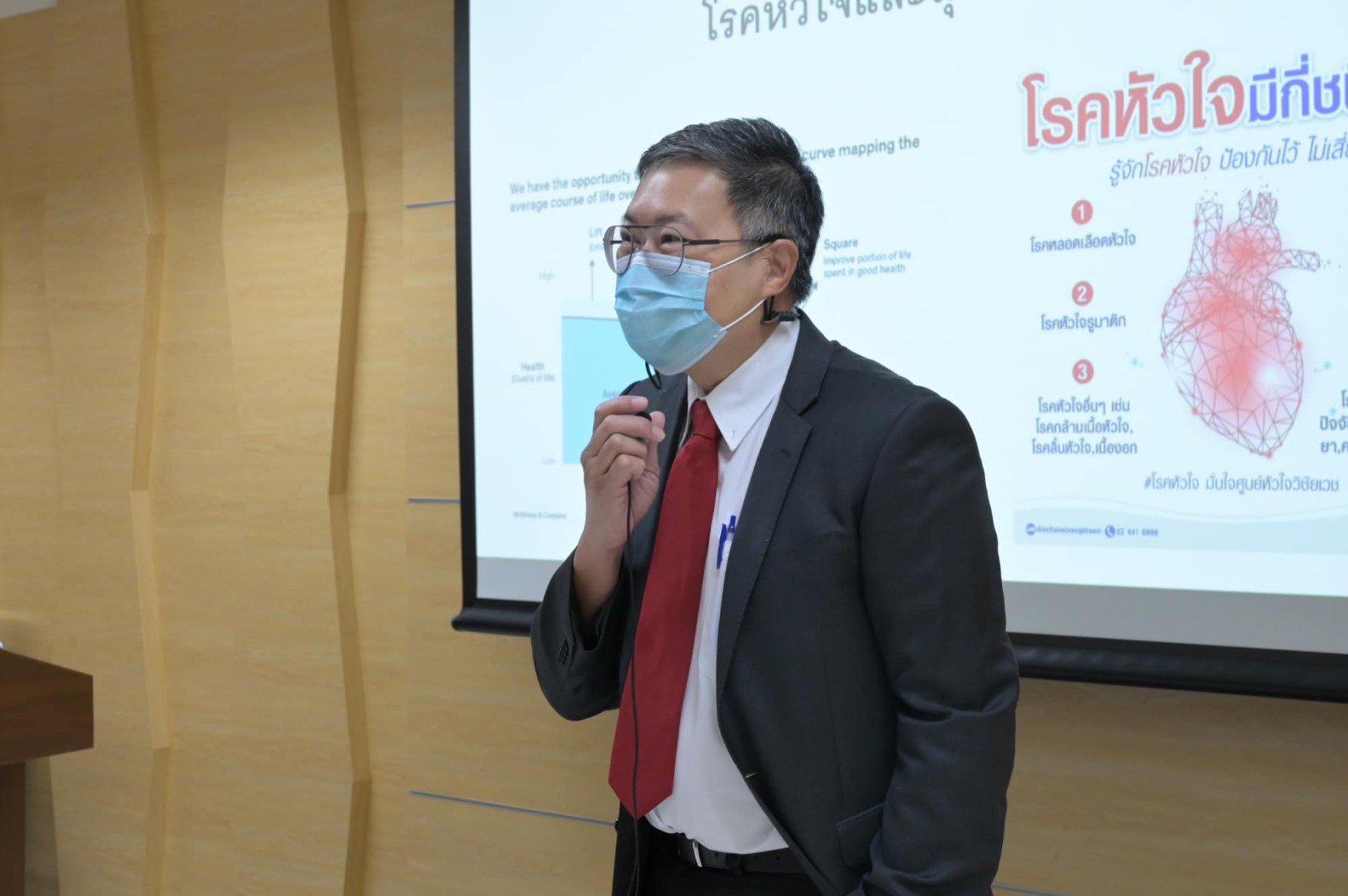 อายุรแพทย์โรคหัวใจ รองคณบดี คณะแพทยศาสตร์ สถาบันเทคโนโลยีพระจอมเกล้าเจ้าคุณทหารลาดกระบัง เป็นวิทยากรบรรยาย